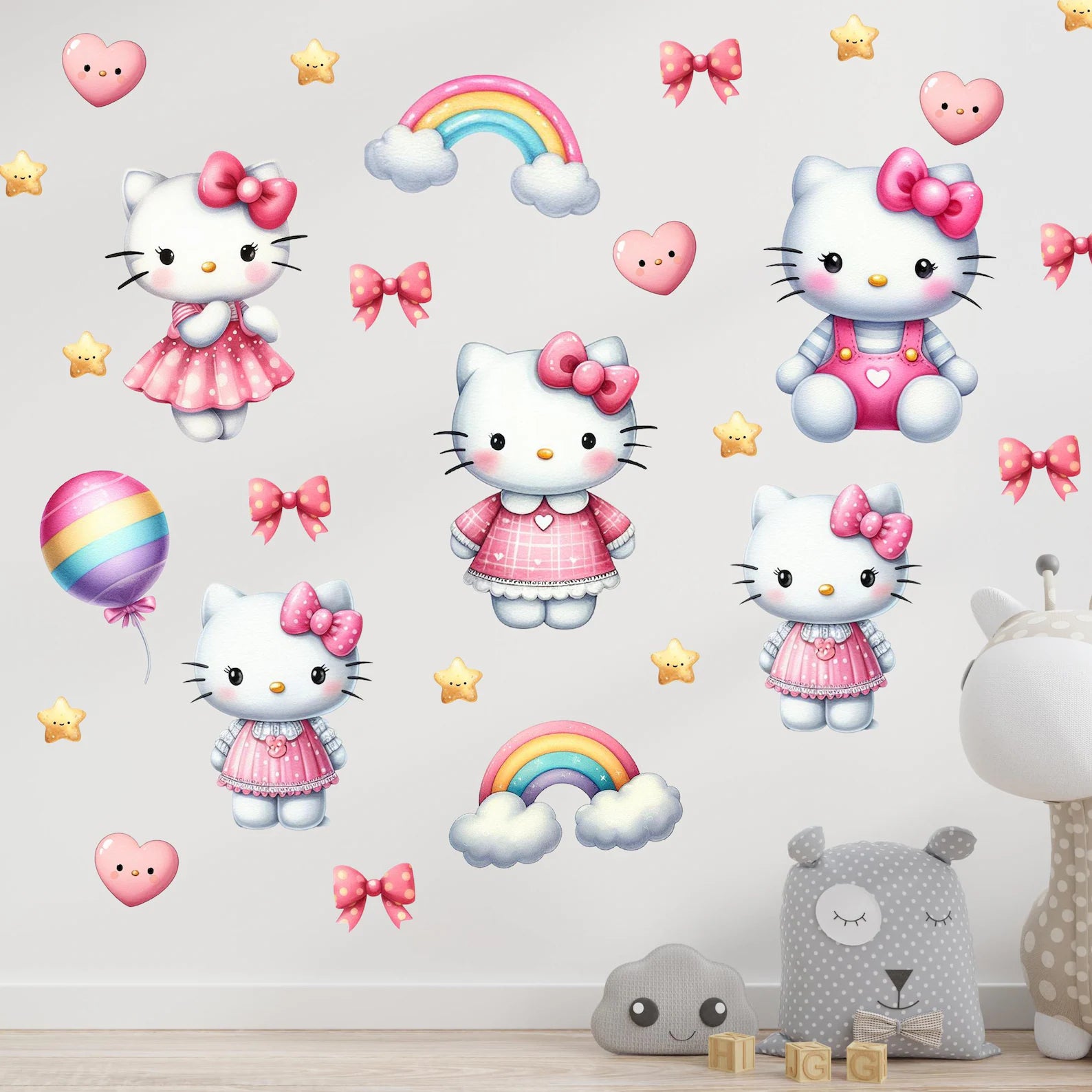 INCH: (Cats β 11.42"x8.27", 9.45"x5.91", Rainbow β 9.06"x5.51", Hearts β 2.76"x2.76", Stars β 1.97"x1.97")