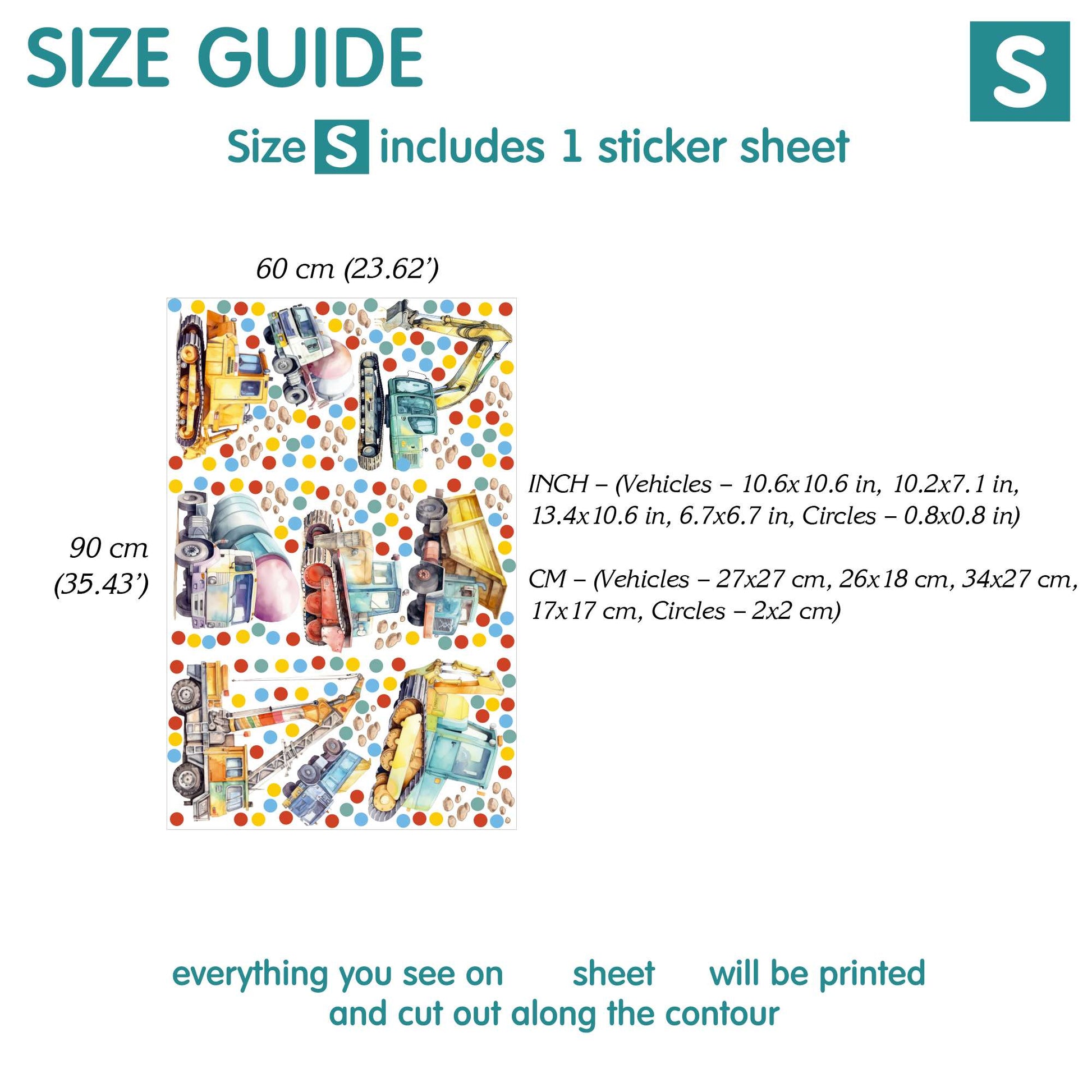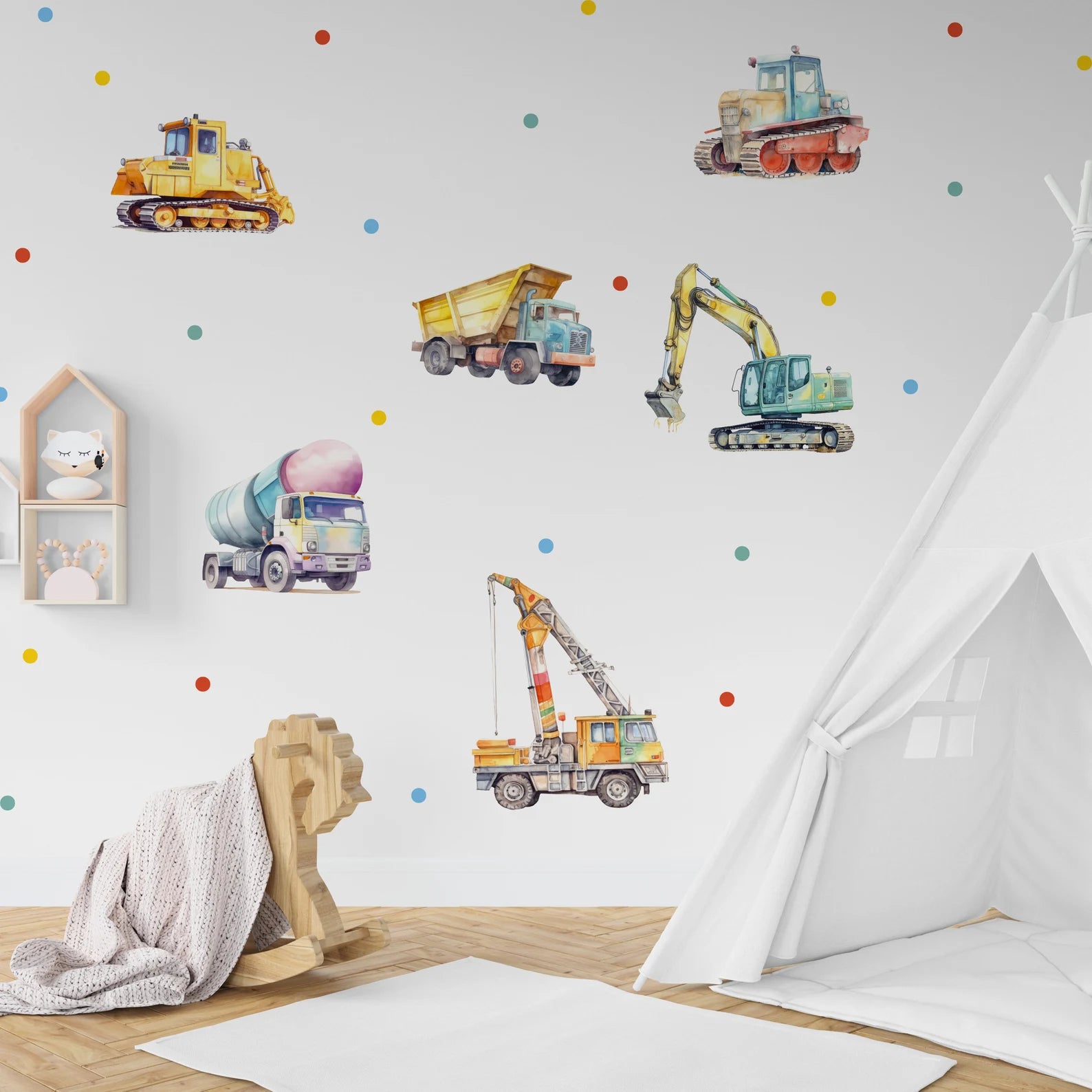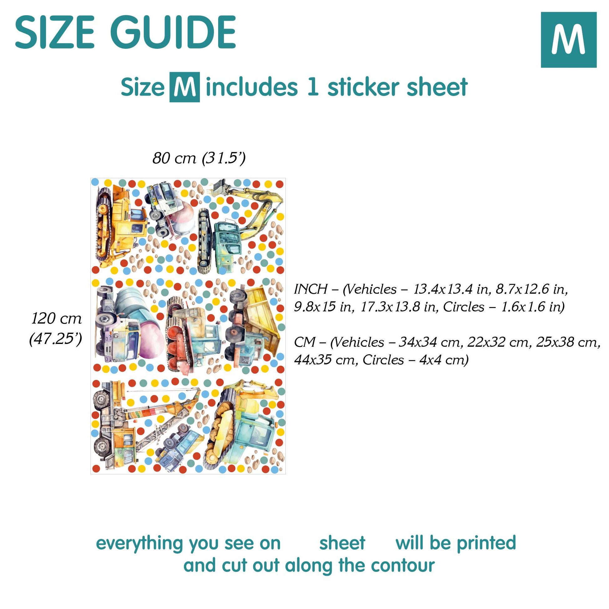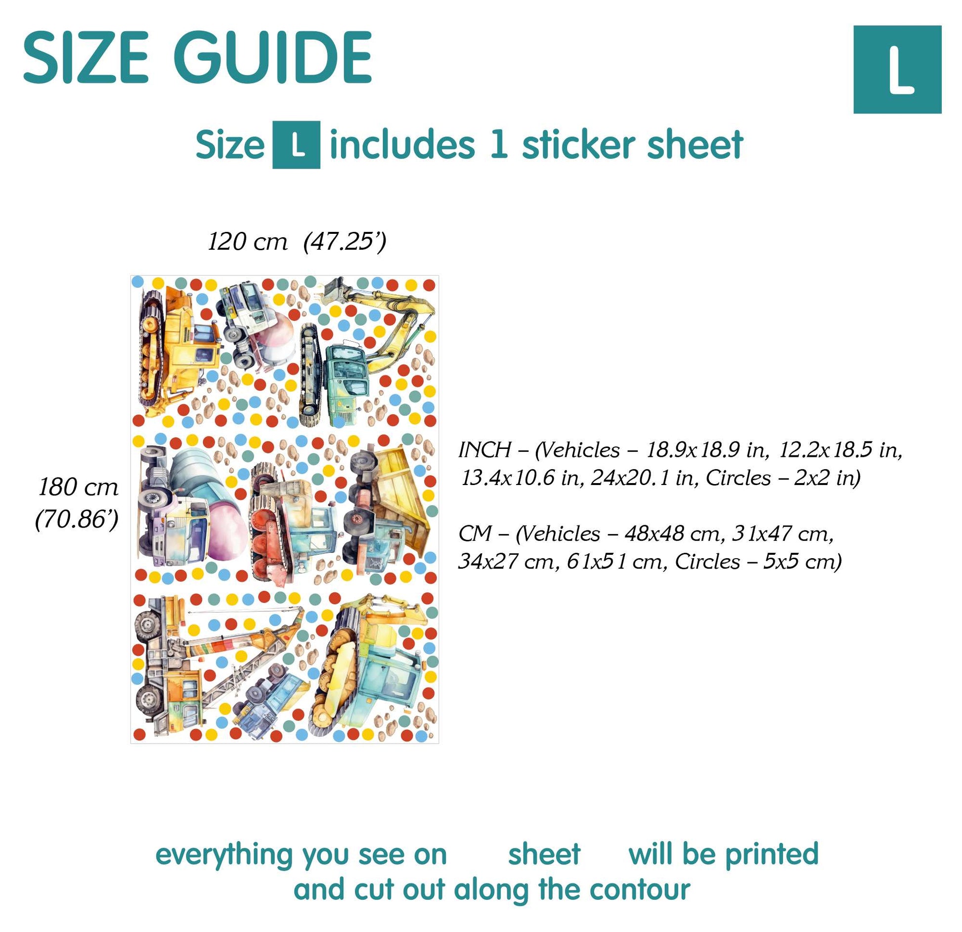 Absolutely beautiful wall stickers, piece of art, unique, such a great quality and detailing to the design, gorgeous wall stickers for our son’s nursery who is obsessed with construction vehicles, high high quality, beautiful bright colours, stickers are very big to cover a full wall, thank you so much, very pleased with them xx