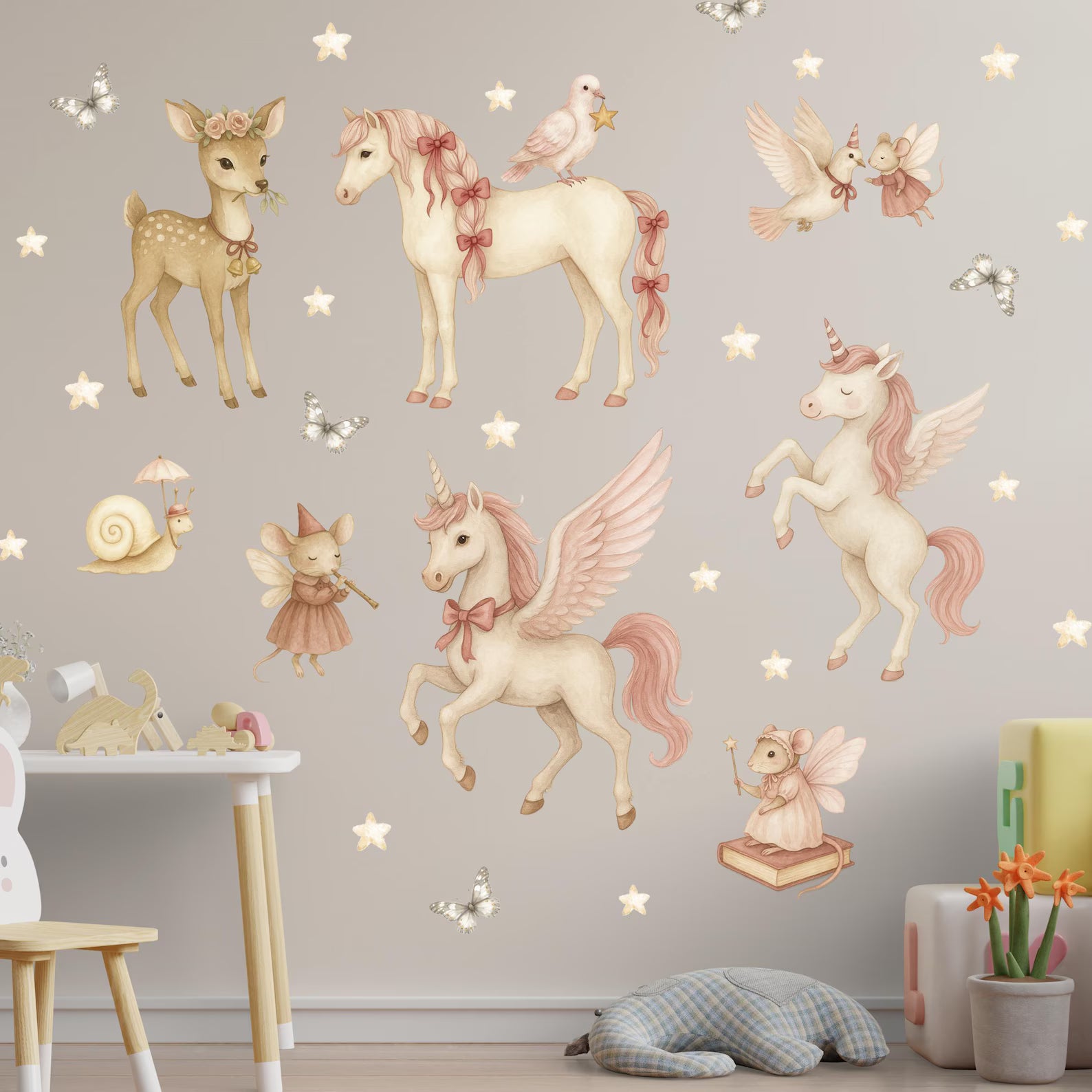 CM: (unicorns β 80x56 cm, 76x55 cm, 66x55 cm; snail β 22x22 cm; dove β 20x20 cm; stars β 7x7 cm)