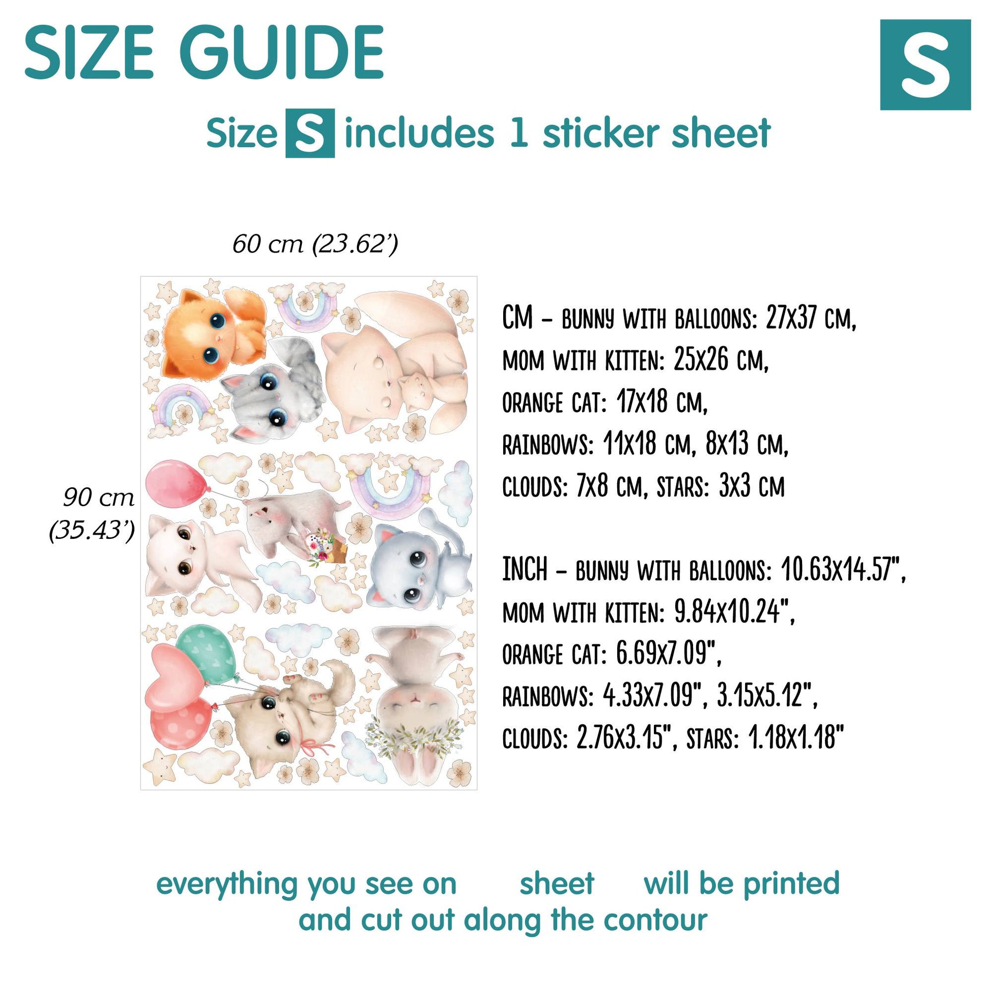 Stickers can be removed without damaging wallpaper or other surfaces. Look carefully at our photos, there is a lot of information about sizes. Рerfect for rented spaces, they come off in seconds without leaving a trace.
